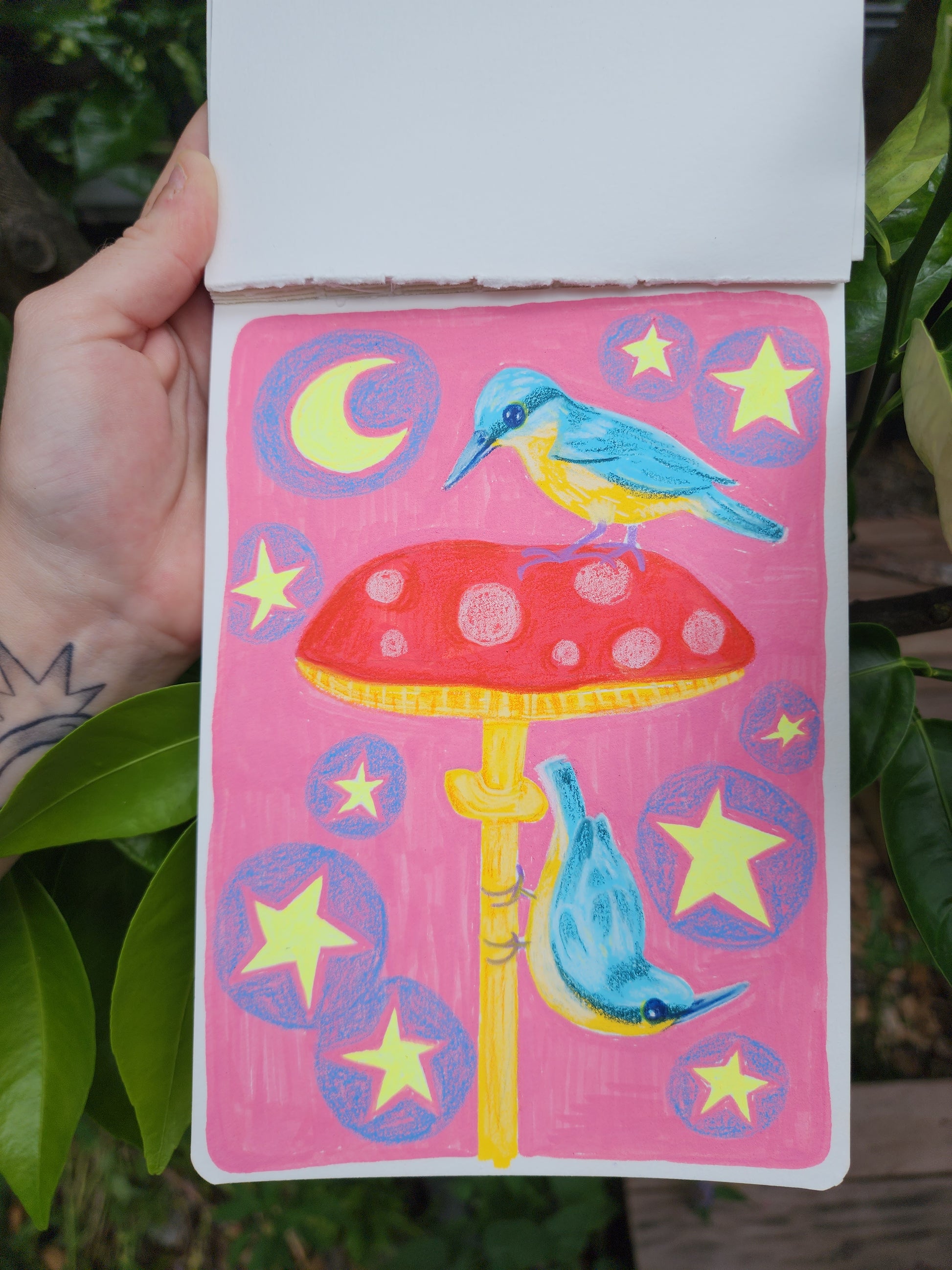 !Please note! Due to the nature of crayons and other soft materials I work with, there are often small smudges (think, my thumbprint in crayon) along the edges of originals, or other minor "quirks". This is because it is the original and hands get crayon on them, I clean up edges digitally in post but cannot in physical. All part of the magic of originals, truely no one else will ever have that small quirk on their piece.
