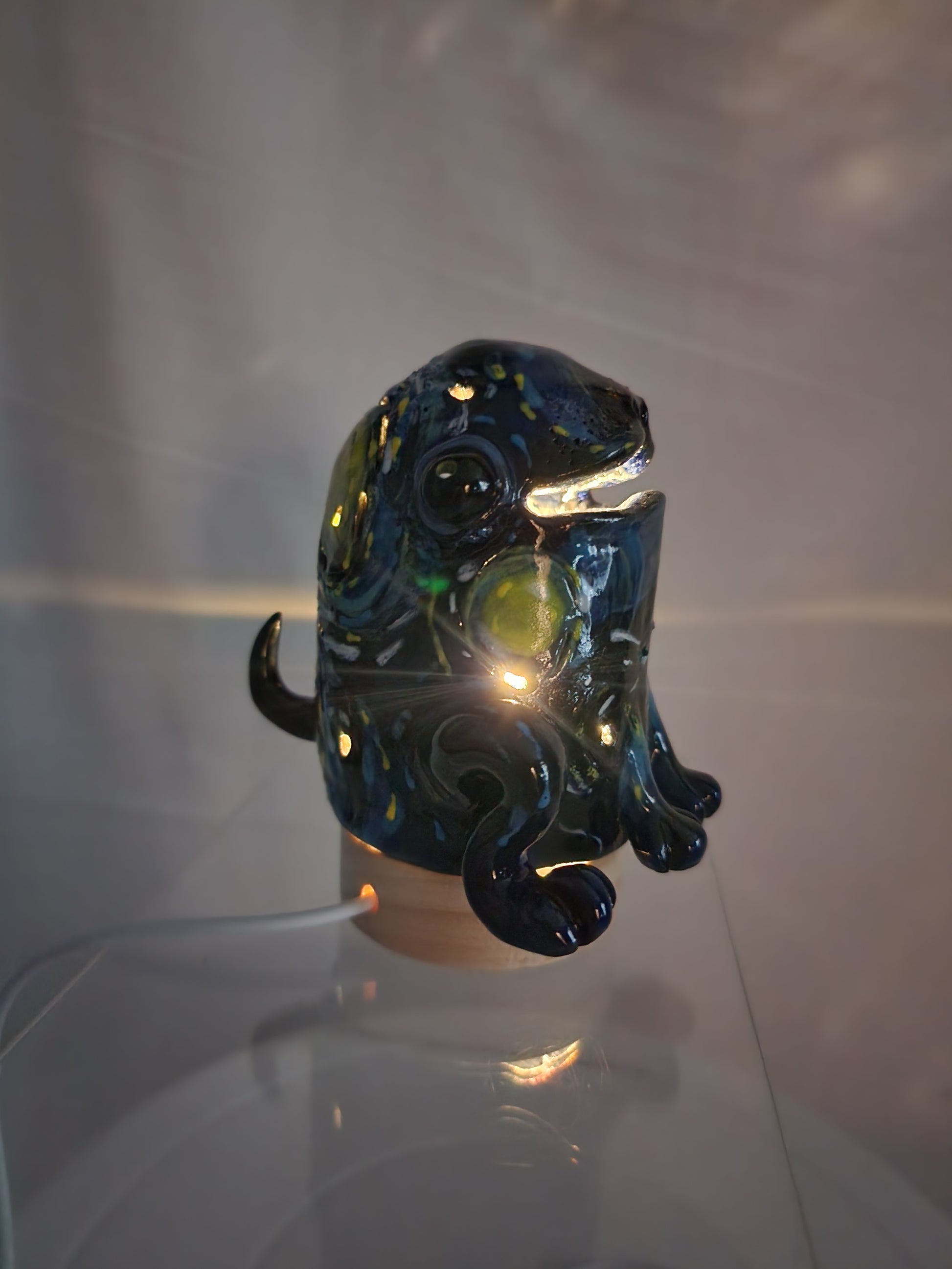 Ceramic starry night frog-dog lamp