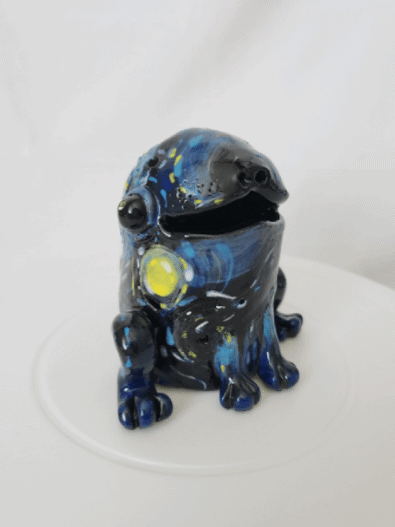 He's a frog. He's a dog. He's starry night. He's a lamp.